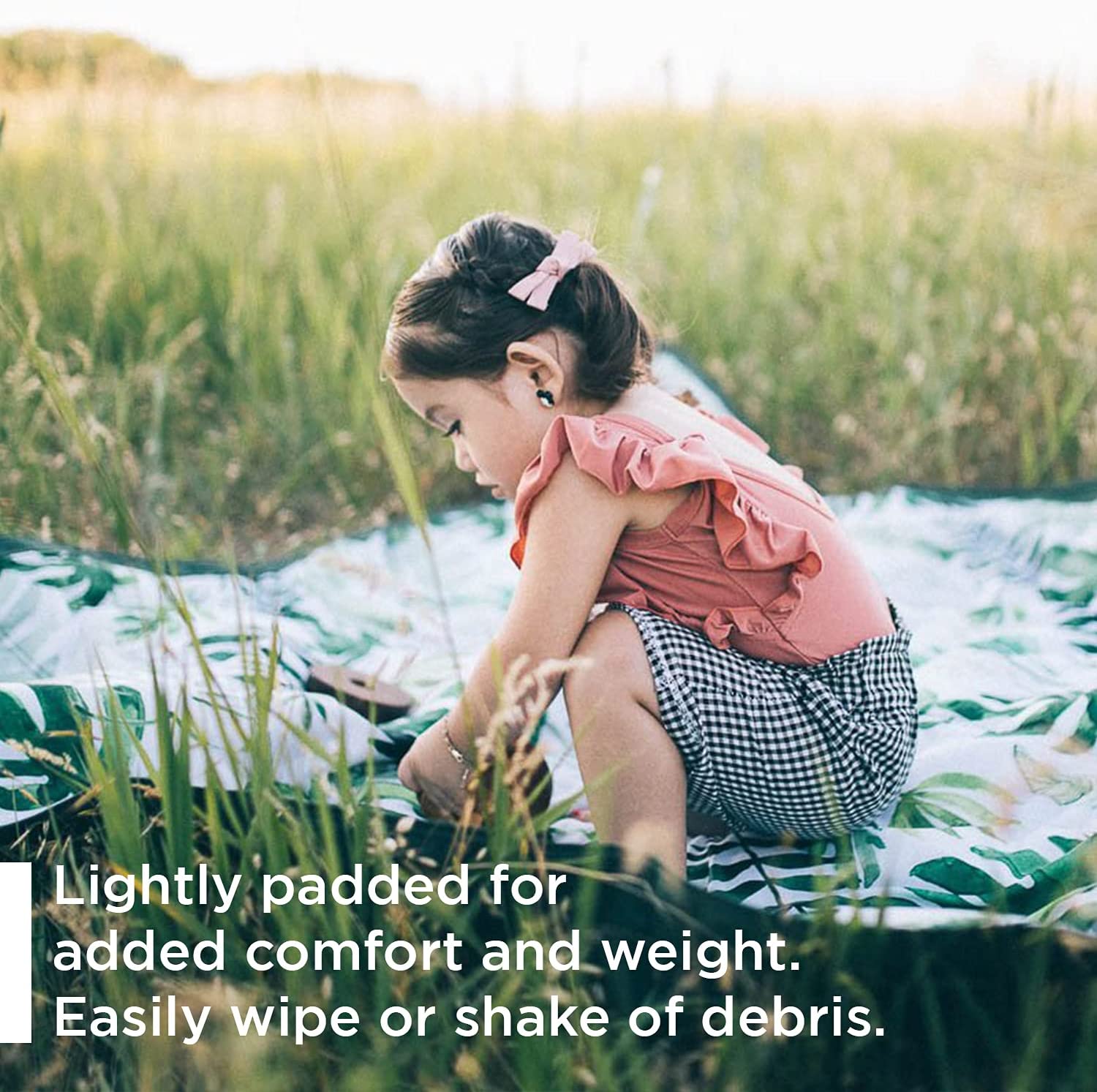Mit ihrer großzügigen Größe bietet diese Picknickdecke viel Platz für Sie und Ihre Lieben zum Ausruhen und Entspannen. Es ist leicht und leicht zu transportieren, sodass Sie es einfach einpacken und auf Ihre Outdoor-Abenteuer mitnehmen können. Dank der wasserabweisenden Unterschicht genießen Sie auch bei feuchtem Boden eine bequeme und trockene Sitzfläche.