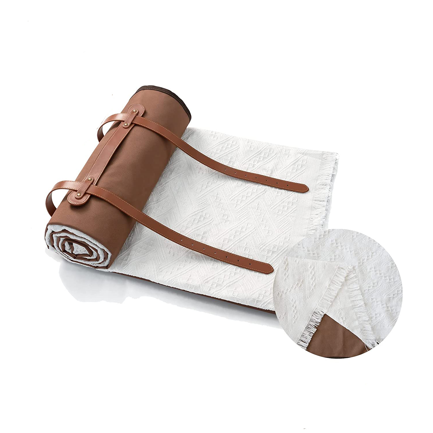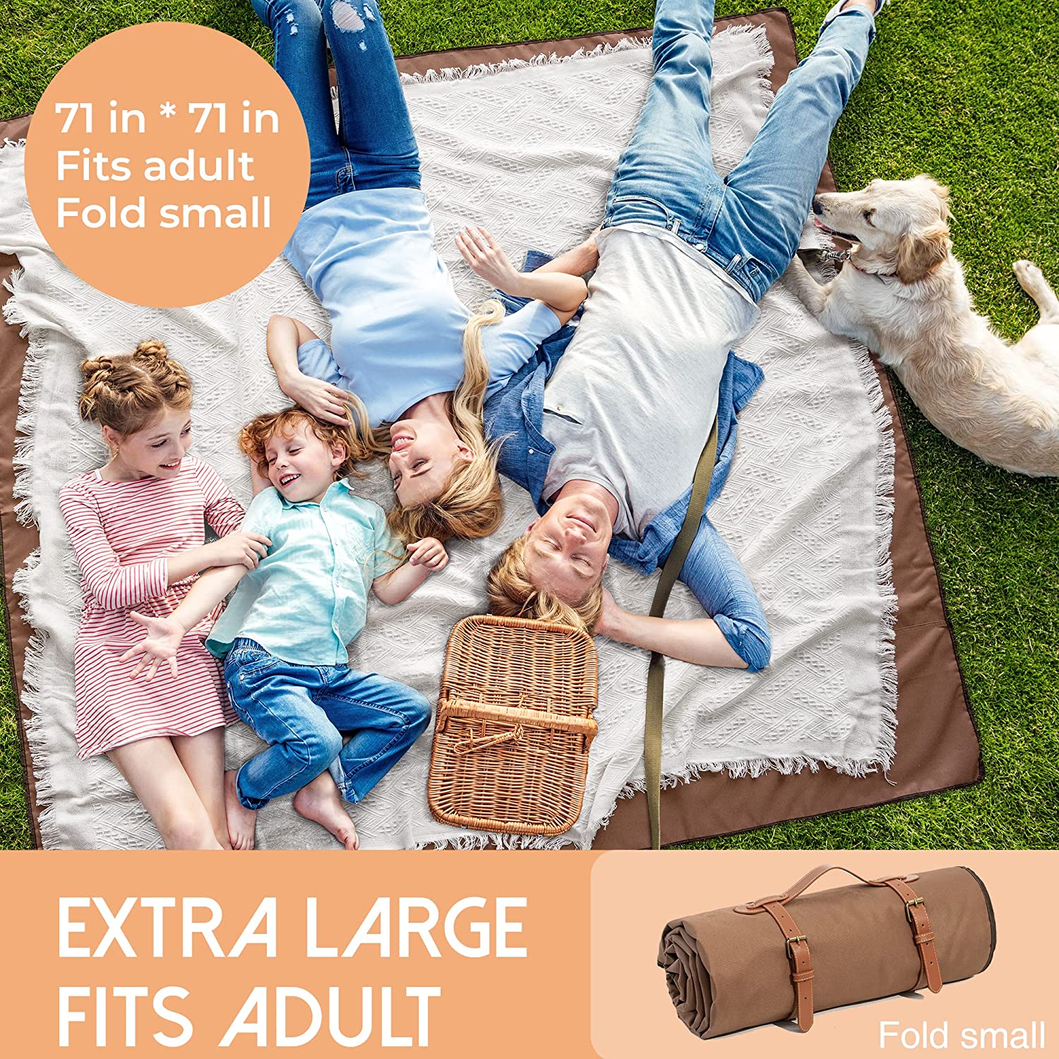 Mit ihrer großzügigen Größe bietet diese Picknickdecke viel Platz für Sie und Ihre Lieben zum Ausruhen und Entspannen. Es ist leicht und leicht zu transportieren, sodass Sie es einfach einpacken und auf Ihre Outdoor-Abenteuer mitnehmen können. Dank der wasserabweisenden Unterschicht genießen Sie auch bei feuchtem Boden eine bequeme und trockene Sitzfläche.